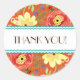 This is a matching Thank You Sticker to match the wedding invitation set of the same name. COLOR PALETTE: persimmon, coral, red, yellow, orange and lime green with a touch of chocolate brown. DESIGN COLLECTION: Matching Thank You Notes, Note Cards. Created from original watercolor hand painted artwork by Audrey Jeanne Roberts, this modern imaginative floral design has a trendy combination of colours. Ranunculus, circle shaped flowers with various whimsical, cute, stylistically rendered flower elements are tossed over the background colour. Some resemble wild roses, berries and daisies with fern style leaves. A bracket style frame has polka dots and a calligraphy swirl type border. There is a wide range of colour combinations available with this pattern.