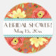 This is a matching Wedding Sticker to match the wedding invitation set of the same name. COLOR PALETTE: persimmon, coral, red, yellow, orange and lime green with a touch of chocolate brown. DESIGN COLLECTION: Matching Thank You Notes, Note Cards. Created from original watercolor hand painted artwork by Audrey Jeanne Roberts, this modern imaginative floral design has a trendy combination of colours. Ranunculus, circle shaped flowers with various whimsical, cute, stylistically rendered flower elements are tossed over the background colour. Some resemble wild roses, berries and daisies with fern style leaves. A bracket style frame has polka dots and a calligraphy swirl type border. There is a wide range of colour combinations available with this pattern.