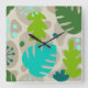 Mod Monstera Leaf Abstract Hawaiian Tropical -Cool Square Wall Clock