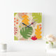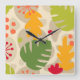 Mod Monstera Leaf Abstract Hawaiian Tropical -Warm Square Wall Clock