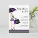 Mod Mum Baby Girl Shower Trendy Black & Purple Invitation