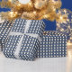 An elegant custom pattern of blue abstract scarabs, linked in a series of linear streamers.