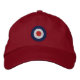 A Mod roundel graphic embroidery design presented on a fine custom embroidered gear gift for the retro, mod, scooter, ska enthusiast or for someone special on your list.