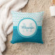 Mod Turquoise Blue Polka Dots Monogram With Name Cushion