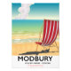 Modbury Devon vintage seaside poster with a classic red and white striped deck chair. Contact me for more travel posters.