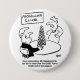 Badge shows a man at a modelling club has built a model of the Eiffel Tower out of sausages. Surreal cartoon by UK cartoonist Nigel Sutherland. Model maker badge. Funny model maker gift.