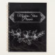A sophisticated planner cover featuring white script typography and a delicate hand-drawn floral illustration set against a dark, textured marble background.