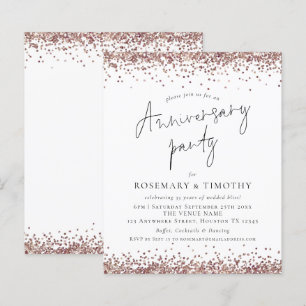 Elegant Pink Gold Floral Wedding Anniversary Invitation