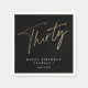 Modern 30th birthday simple stylish elegant party napkin features stylish faux gold foil number handwritten script Thirty and your party details in classic serif font on black background colour, simple and elegant, great surprise adult milestone party decor for men and women. The black background colour can be changed to any colour of your choice.