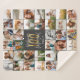Modern minimal multi photo script 100th birthday blanket gift. Ideal gift available for mums, dads, grand, grandad of any family member. Stunning elegant script text. Black, white and gold design.
