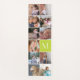 Modern photo collage and monogram yoga mat. It features 11 family photos and your initial/monogram on a green square colour block. The back inclues colourful colour squares in several colours. Photography © Storytree Studios, Stanford, CA