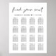 Simple and modern wedding seating chart poster for up to 16 tables featuring "find your seat" in a chic script and your names and wedding date joined together by a heart. Select the digital download option to edit with last minute changes and print locally.