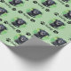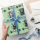 Modern 1 Pet Paw Print photo name Green Wrapping Paper