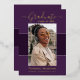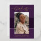 Beautiful 1 photo graduation announcement cards. Featuring modern text with elegant calligraphy script in your choice of gold, silver or rose foil. Your photos are thinly edged in white trim for that extra "Pop". The design is complimented with a background in shades of purple. The back of the card offers a personalised announcement text space for that special graduate. To see more items like this, visit my store here at "www.Zazzle.com/LakeViewCardCo". Thanks