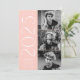 2025 graduation party invitations featuring the graduate's three photos located to the right of the design in a vertical layout. "2025" is displayed in white, modern art deco lettering with a blush pink background. Personalise the modern photo graduation party invite by adding the graduate's name and school name. The design reverses to display your graduation party details with a blush and white geometric swirl background. Perfect for both high school and college graduations!