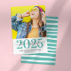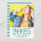 Personalised modern graduation announcement card featuring a photo of the grad, the year 2024 in teal, their name, and the high school/university that their attended.