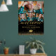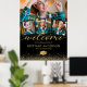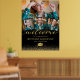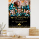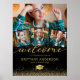 Custom 2026 graduation welcome poster featuring a stylish black background that can be changed to any color, 4 photos of the graduate, elegant faux gold glitter, a mortarboard, and a simple welcome template that is easy to personalize.