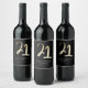 Modern 21st Birthday Black & Gold Script wine label features stylish faux gold foil number. Simple and elegant, great surprise adult milestone birthday decor for men and women. The black background colour on the back can be changed to any colour of your choice.