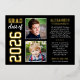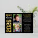 Announce your high school graduate in style with this 2 photo real foil graduation announcement and party invitation. Two-sided "Now and Then" card features two photos of the grad (a current picture and older one from their first day of school) with a simple and masculine design with sports jersey inspired lettering. Black, gold, and white colours.