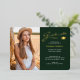 This double sided 2 photo stylish graduation announcement or thank you card with real gold foil, features modern text fused with elegant calligraphy script in gold foil and white on forest green. Photos are one on the front and one on the back, perfect for framing. The background can be easily customised to a colour of your choice. To see more items like this, visit my store here at "www.Zazzle.com/LakeViewCardCo". Thanks