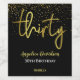 A gorgeous modern 30th birthday party wine label. This fabulous bottle label features gold effect typography on a black background with gold confetti. Easy to personalise with your own birthday party celebration details.