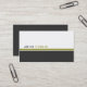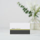 A white background with a large charcoal coloured stripe and a smaller olive green coloured stripe at the bottom of the card. Your name is on the front and all other information is on the back.