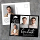Modern 3 Photo Bold Script Black Graduation Announcement Postcard