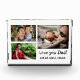 Modern Simple Elegant Trendy Custom Photo Collage Love You Dad Photo Block. He's an awesome dad; best dad ever! Personalised one-of-a-kind unique create your own custom 3 photo collage keepsake photo block, featuring a small heart detail in a fingerprint design. Easily add your own text and personal pictures. This memorable customised keepsake captures the love between father and child. Modern handlettering typography notes "Love you Dad" plus child's or children's name(s). Option to change the name from Dad to Daddy or whatever name you choose, or uncle or grandpa or grandad. Your photos can be colour or black and white. White background colour can also be changed. Unique gift idea for his birthday, Christmas, Father's Day or just because. Personalised thoughtful gifts for dad from daughter or son for the dad who wants of nothing. Elegant addition to his desk. He'll treasure it always! Step by Step Inspiration Series available exclusively on Zazzle at zazzle.com/store/KrisHarty, designed by international designer, Kris Harty. © 2023 Kris Harty Step By Step Inspiration