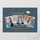Beautiful 3 photo graduation announcement cards. Featuring modern text with elegant calligraphy script in your choice of gold, silver or rose foil. Your photos are thinly edged in white trim for that extra "Pop". The design is complimented with a background of dusty blue. The back of the card offers a personalised announcement text space for that special graduate. To see more items like this, visit my store here at "www.Zazzle.com/LakeViewCardCo". Thanks