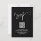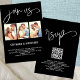 Modern 3 Photos Join Us Script Wedding Black. Join us on the front and rsvp on the back are in a set elegant script. Easily personalise the rest of the text with your details and simply replace the sample images with your own favourites. Enter the URL for your wedding website QR code to replace the sample URL in the template and your QR code will automatically be generated and replace the sample code on the back. Or you can delete the code and txt on the back if preferred. You can also change text and background colours if you so wish via the Edit further option.