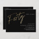 Modern minimalist 40th birthday party invitation features stylish faux gold foil number handwritten script Forty and your party details in classic serif font on black background colour, simple and elegant, great surprise adult milestone birthday invitation for men and women. the black background colour can be changed to any colour of your choice.