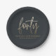 Modern 40th birthday simple stylish elegant black and gold script paper plate