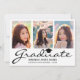 Modern 4 Photo Collage Black Script Graduation Announcement