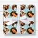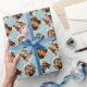 Modern 4 Photo Collage Circle Heart Pattern Blue Wrapping Paper