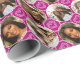 Modern 4 Photo Collage Circle Heart Pattern Pink Wrapping Paper