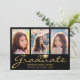 Modern 4 Photo Collage Gold Script Graduation Announcement