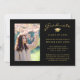 Send your family and friends a unique custom photo collage graduation announcement card to wow them. This simple template design features three photos for you to change to your own on the front framed in black. Below your photos is the word "Graduate" in modern faux gold handwritten script typography and your name and details to personalise. The back of the card has a 4th photo along with more of your graduation details and future plans to customise. Designed by Susan Coffey.