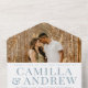 Modern typography and a 4 photo collage are the features of this all in one wedding invitation with tear off response card. Click edit to customise this design.