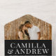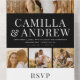 Modern typography and a 4 photo collage are the features of this all in one wedding invitation with tear off response card. Click edit to customise this design.