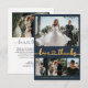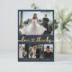 Modern 4 Photo Heart Script Navy Wedding Thank You Card