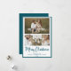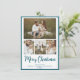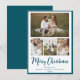 This beautiful photo collage Christmas card with 4 photos, Merry Christmas in a modern brush script font, a customisable sentiment, your names and the year would be perfect for sending to your friends and family. Everyone will love getting new photos of your beautiful family. The fonts are modern and clean in teal. On the back there is a coordinating teal with white polka dots. To make this card your own, simply select Personalise this template, upload your favourite photos of your family and type in your sentiment, names and the year. It's super easy! In just seconds you will see your unique and fabulous photo holiday cards.