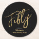 Modern 50th Birthday Black Gold Typography Custom Round Paper Coaster