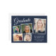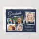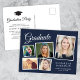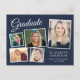 Modern dark blue graduation party postcard invitation featuring a 5 photo collage, "Graduate" in an elegant white script, and the grad's name, school and class year in simple white typography. Add your party details on the back.