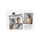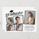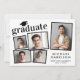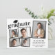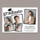 Modern graduation announcement featuring a 5 photo collage of scattered pictures in frames, "graduate" in bold trendy typography and the grad's name, school and class year in simple typography.