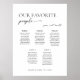 Modern Script Wedding Seating Plan. Our Favourite People sign. Personalised Simple Minimalist Seating Chart for 50 guests (5 tables). Just click the customise further link, shown under the text personalisation area on the right, and choose your custom colour background. This sign poster template makes it fast and easy to create stunning additions to your wedding decor. Signs can be enlarged, there are many sizes to choose from, as well as options for custom framing and matting.
