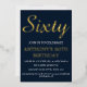Modern 60th Birthday Navy Blue Gold Foil QR Code