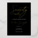 Elegant Seventy & Fabulous foil 70th black background gold foil birthday invitation featuring modern script typography and luxe foil detailing. Fully customizable — personalize all event details and choose your foil color in gold, silver, or rose to match your celebration. Designed to create the perfect celebration. The words "Seventy, and Fabulous" are set using popular typography.