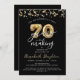 Modern and festive 70th birthday party invitation featuring the title You Are Invited to a Party 70 YEARS IN THE MAKING in calligraphy script typography and faux metallic gold balloon numbers and gold streamers and confetti and white lights in your choice of background colour (shown in black). ASSISTANCE: For help with design modification or personalisation, colour change, transferring the design to another product or if you would like coordinating items, contact the designer BEFORE ordering via Zazzle Chat or email makeitaboutyoustore@gmail.com.