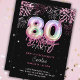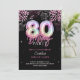 Modern 80th Pink Foil Balloon Fireworks Birthday Invitation