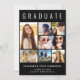 Elegant and modern black graduation announcement card to celebrate the graduate featuring "GRADUATE" across the top in large white typography, a seven photo collage and his or her name, class year and school in modern white typography. On the back add an additional photo and a personalised message.